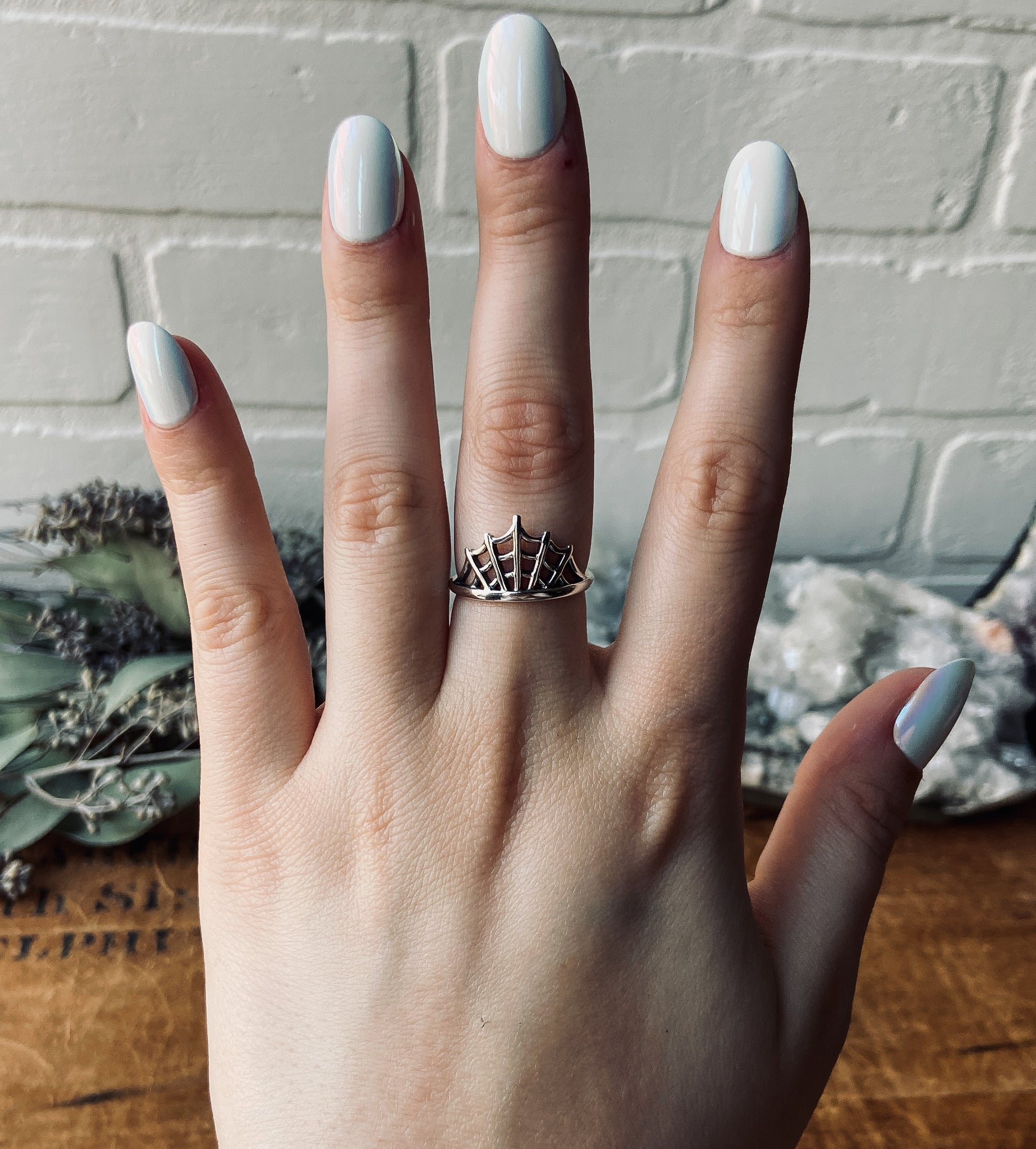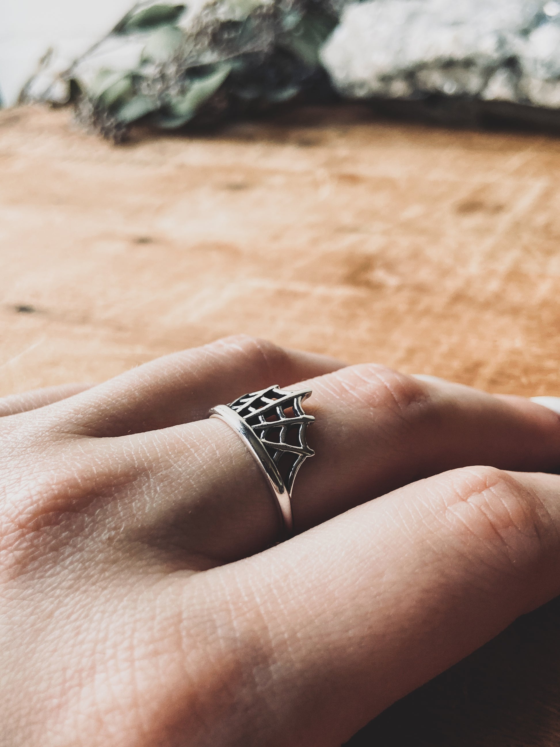 This Sterling Silver Spider Web Ring is perfect by itself or with others.